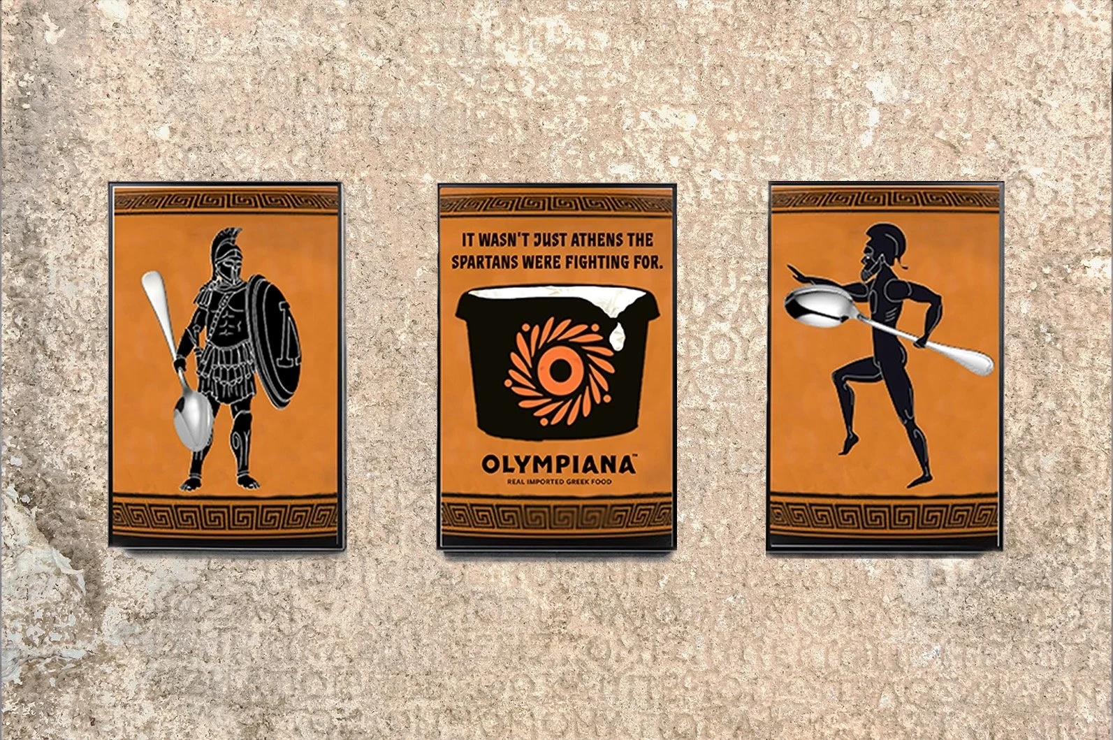 Selling Olympiana Yogurt one metal spoon and Spartan at a time. These OOH posters derived from a deconstructed Greek vase will be featured in popular urban areas (Click to Enlarge).