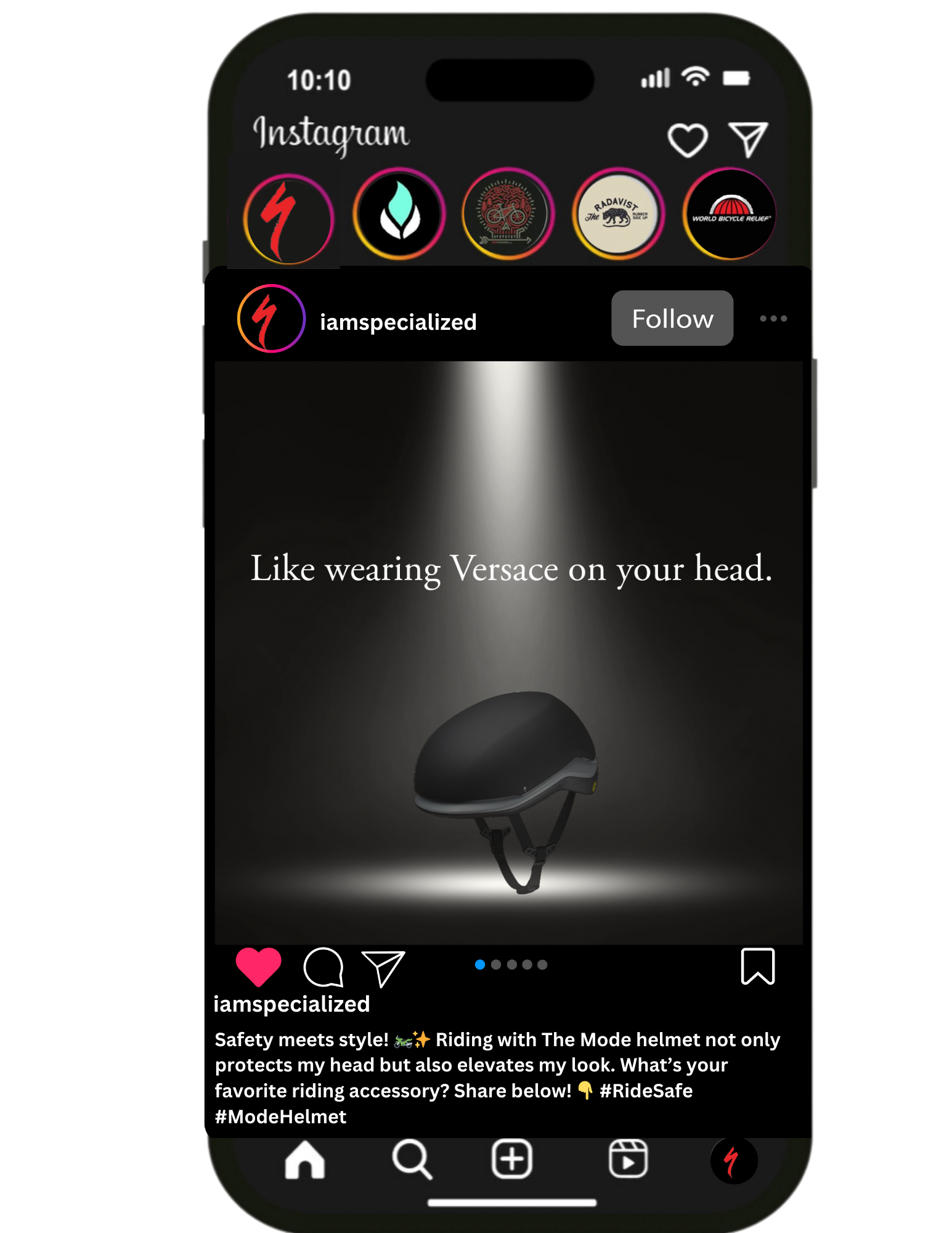 A targeted Instagram ad will ask scrollers to share their favorite riding accessory. Who wouldn’t want to wear Versace on their head? (Click to Enlarge)